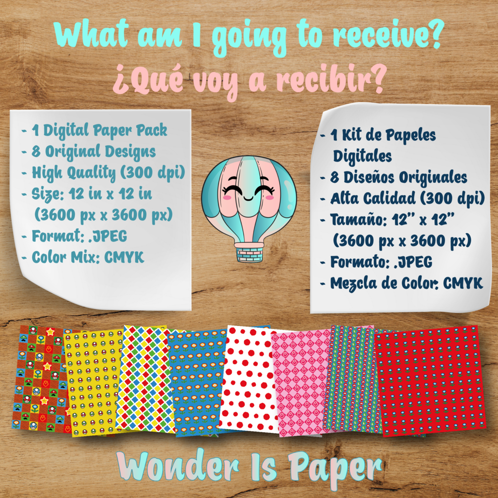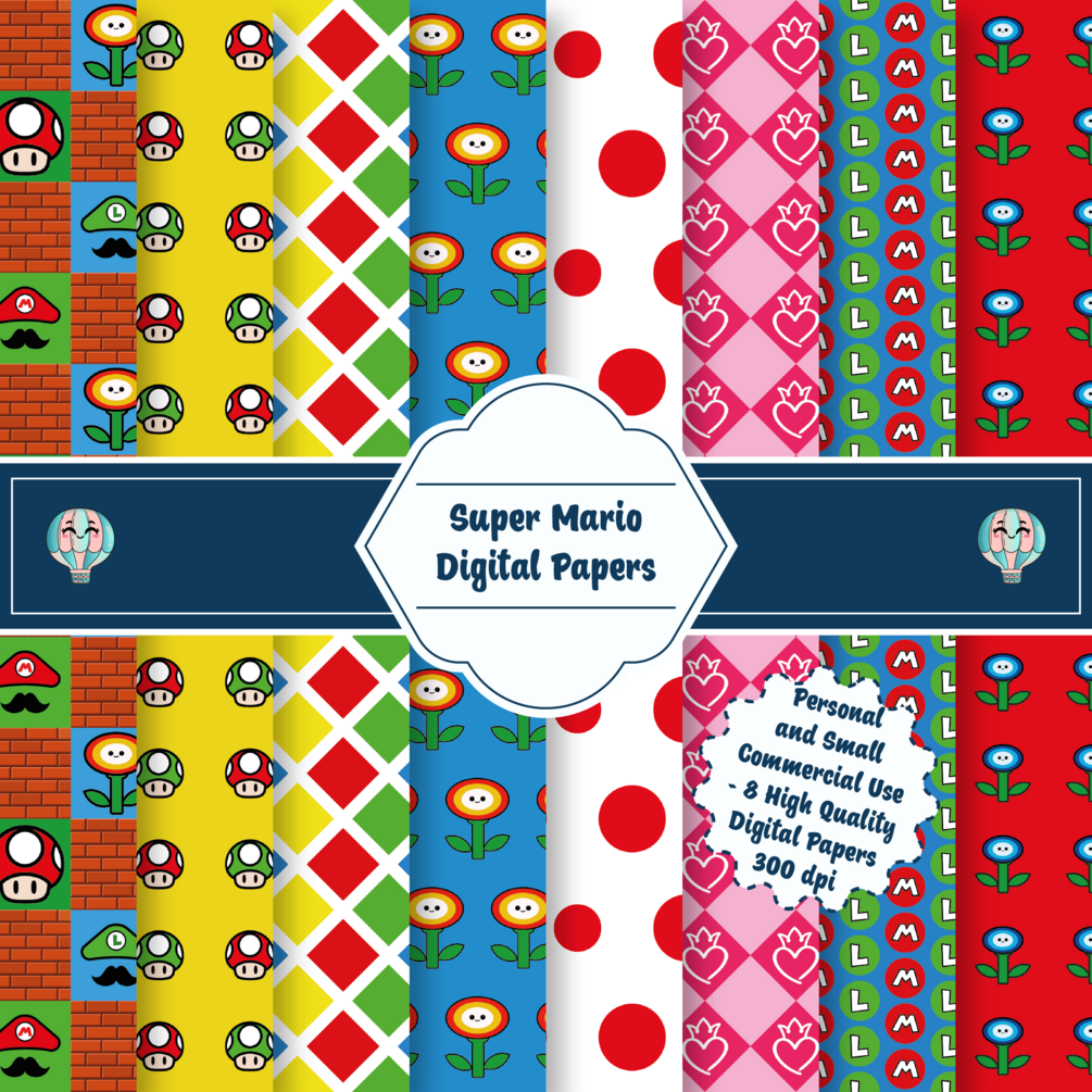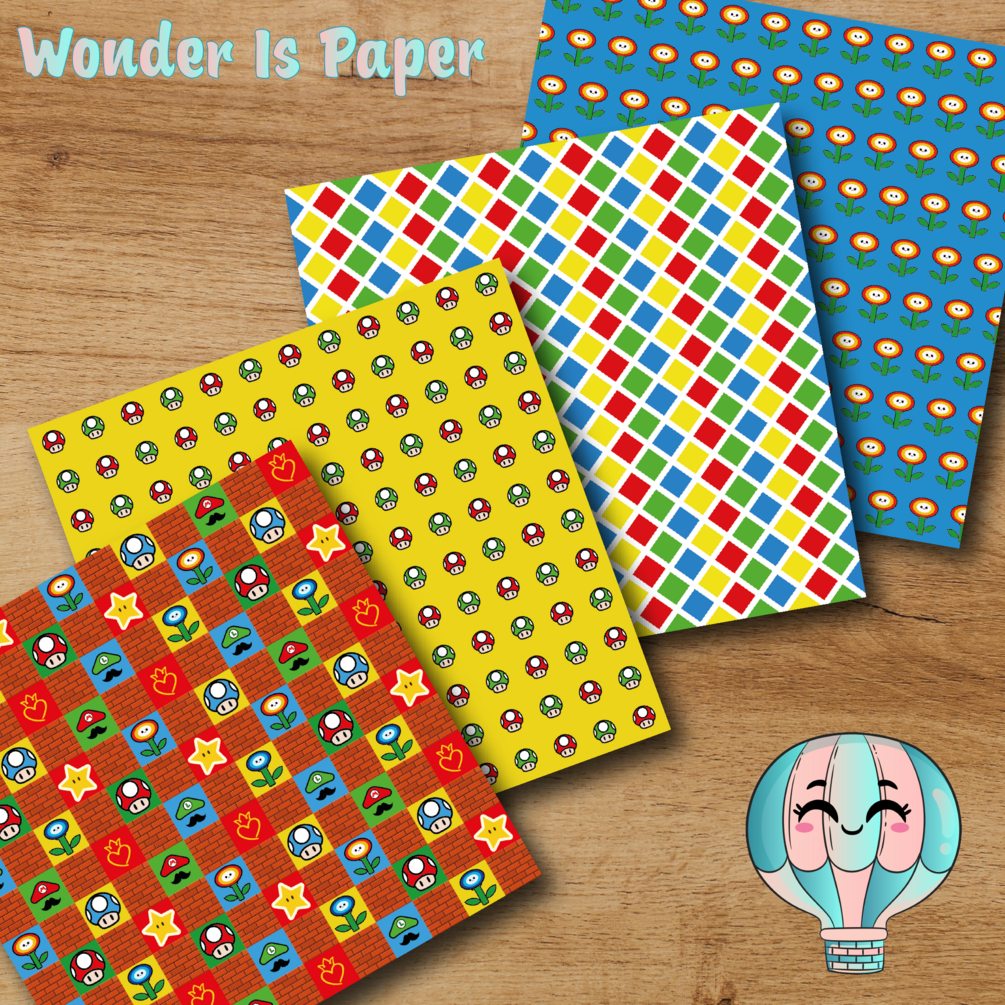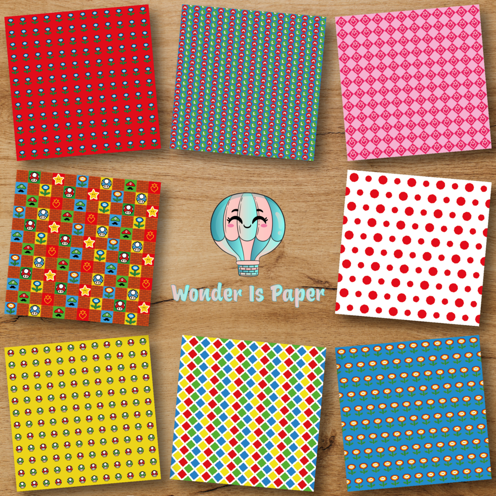 SUPER MARIO Digital Papers - High Quality Designs - 8 Patterns - 12 in x 12 in - 30 cm x 30 cm - Ready to Print and Cut