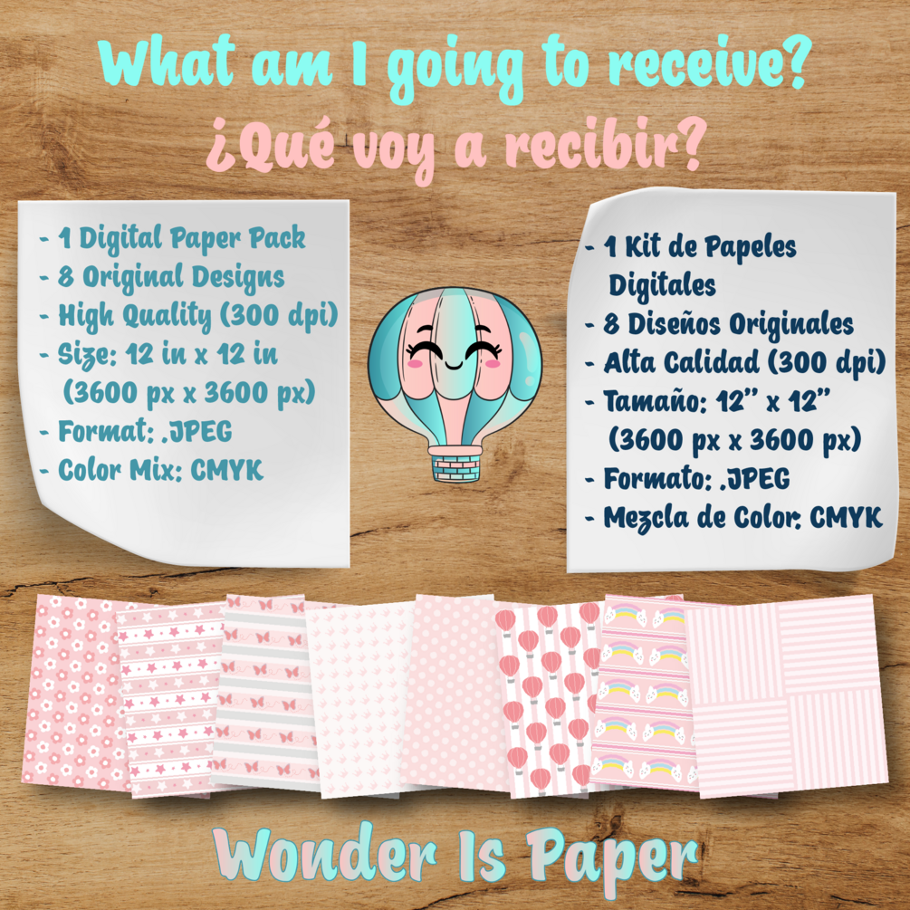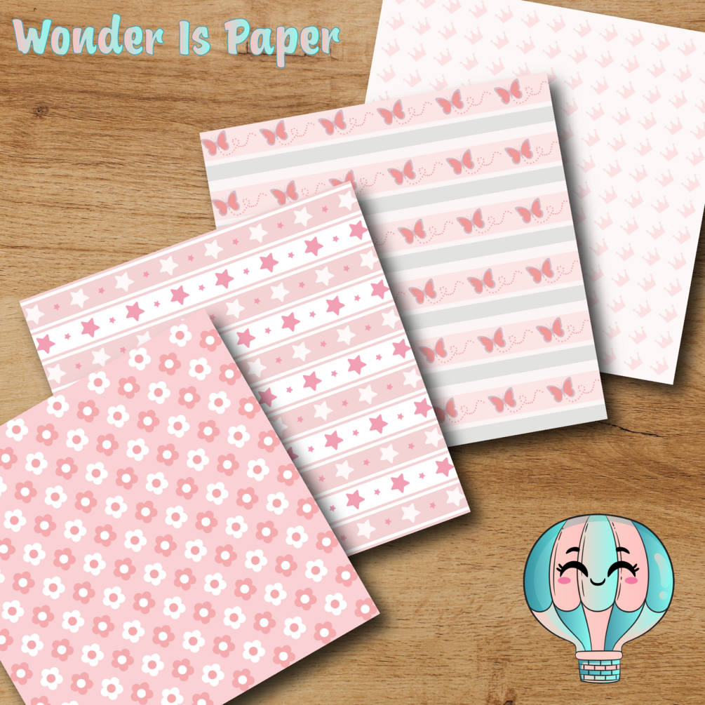 BABY GIRL Digital Papers - High Quality Designs - 8 Patterns - 12 in x 12 in - 30 cm x 30 cm - Ready to Print and Cut