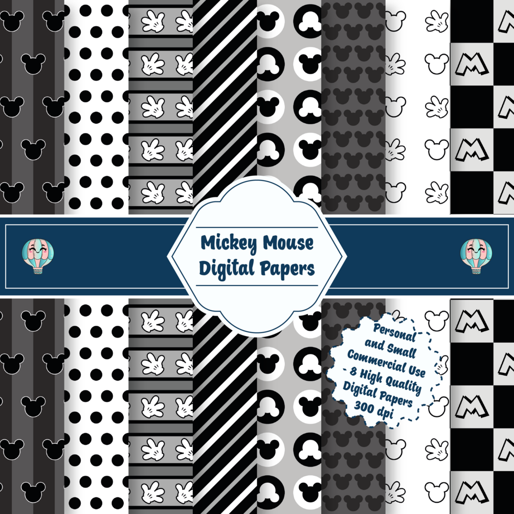 MICKEY MOUSE Digital Papers - High Quality Designs - 8 Patterns - 12 in x 12 in - 30 cm x 30 cm - Ready to Print and Cut