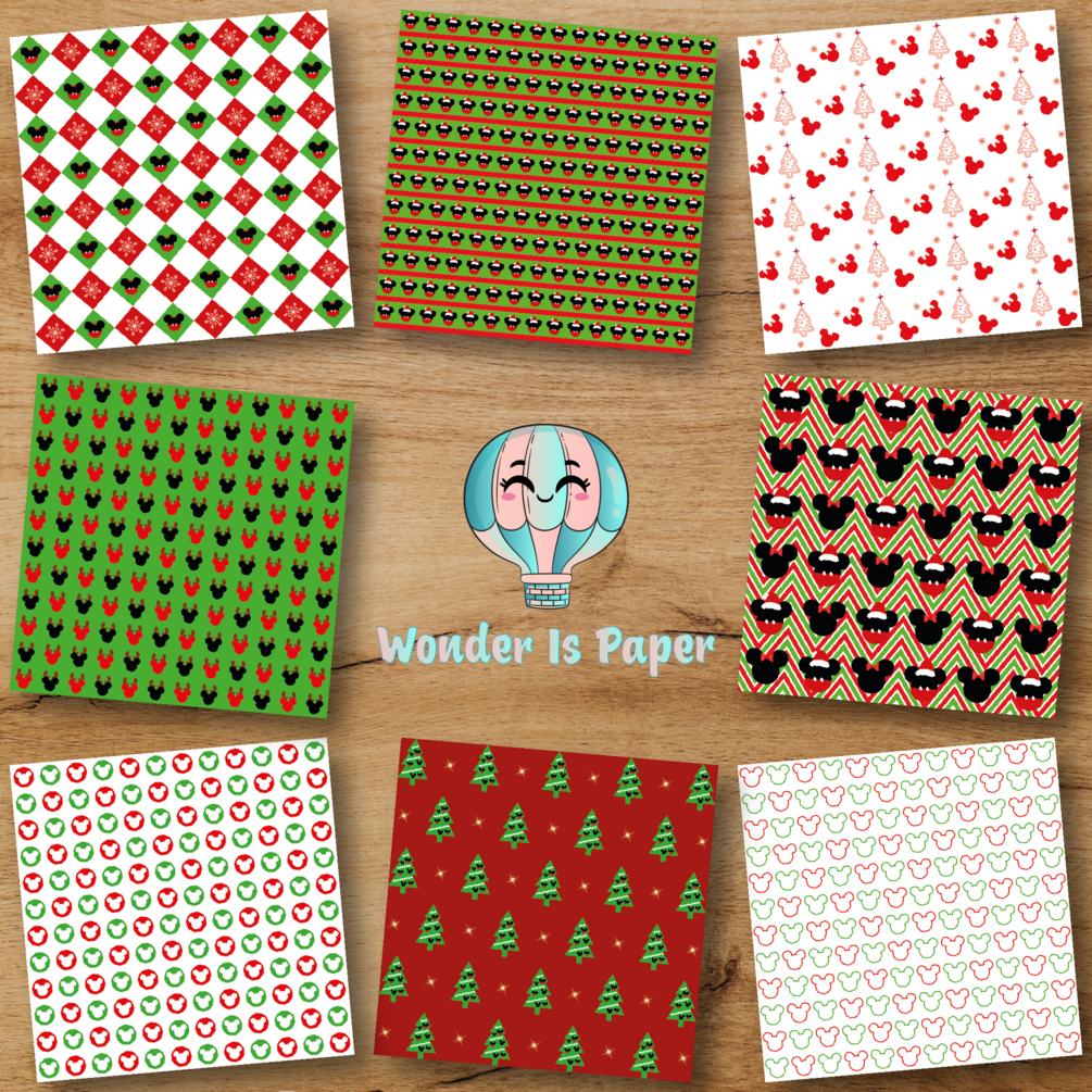 MICKEY'S CHRISTMAS Digital Papers - High Quality Designs - 8 Patterns - 12 in x 12 in - 30 cm x 30 cm - Ready to Print and Cut